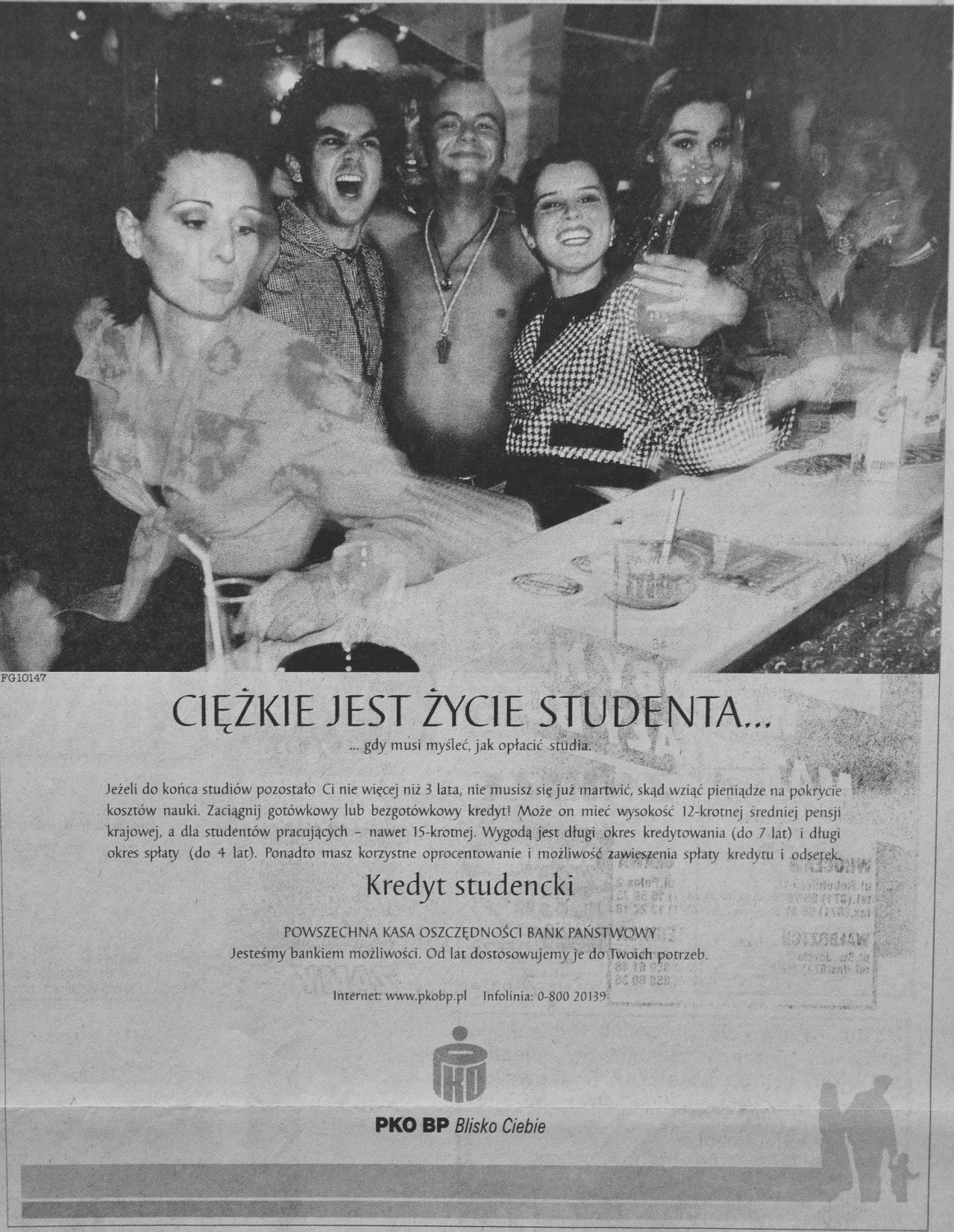 Эта реклама предлагает выгодный вариант кредита для студентов, которые должны оплачивать свое обучение в промежутке между веселыми вечеринками. Размещенное в газете фото и заголовок “Трудная жизнь студента” в таком сочетании содержит иронический оттенок, но объявление вполне серьезно расписывает преимущества кредитования в конкретном банке. Приведены не только номер телефона учреждения, но и адрес веб-сайта, что в то время добавляло вес объявлению.